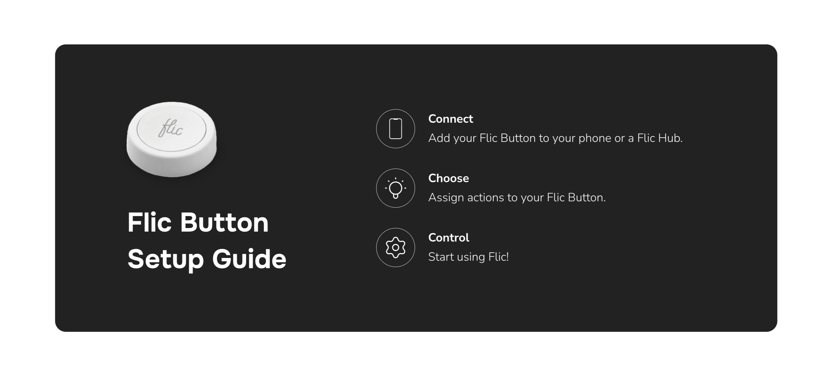 Instead of apps or voice commands; push a button. The new Flic 2 Smart Button is simple to set-up in the app and even simpler to use. Connect to the Flic App or to the Flic Hub for thousands of possibilities.