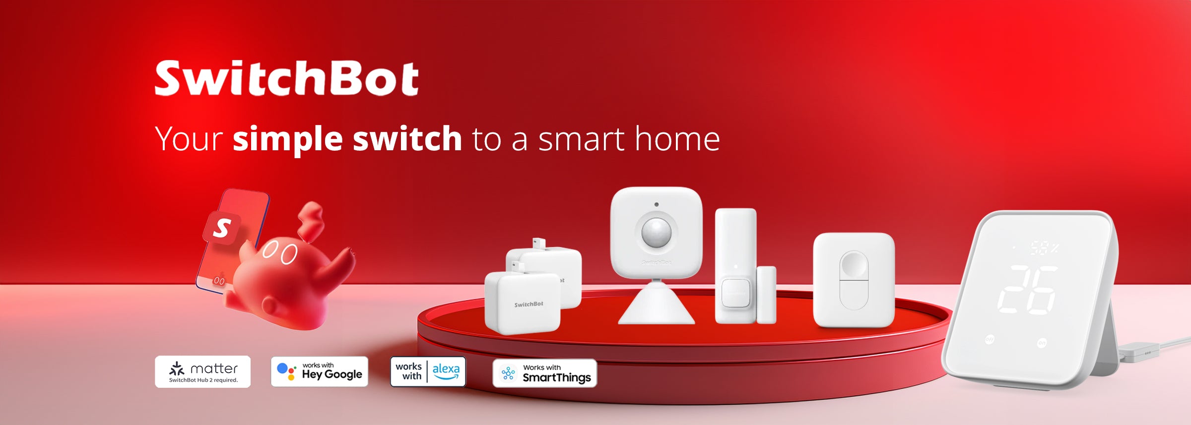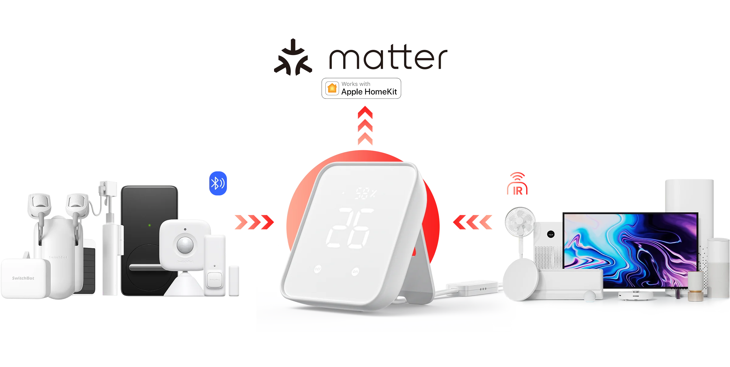 Connect your bluetooth only SwitchBot product to connect Hub 2 to your smart home ecosystem to implement Matter over Wi-Fi in the future.