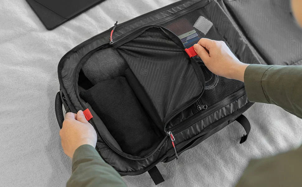 You can reach the main compartment from the quick access front pocket for easy reach of your travel essentials on the go, and the main compartment can also be unzipped like a suitcase for easy packing and unpacking.