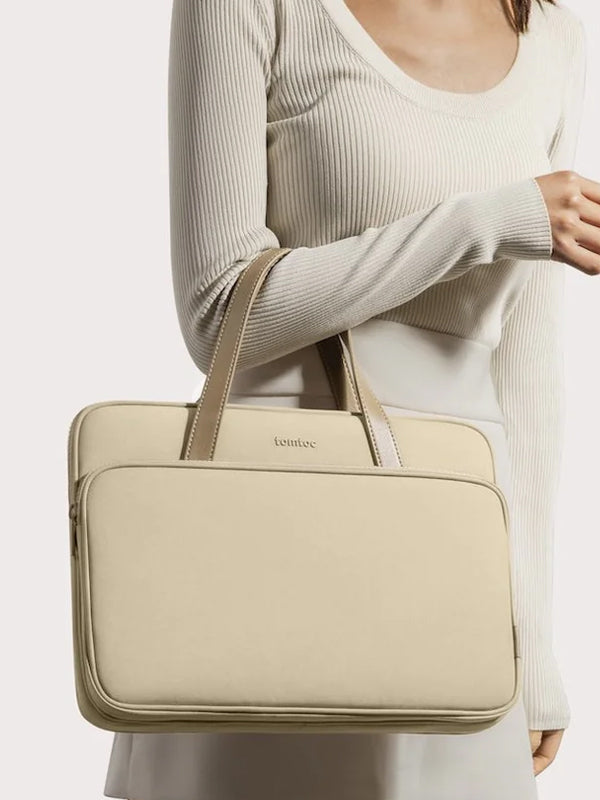 Keeping ladies at the front and center of its designs, tomtoc designed the H21 series laptop briefcase. It provides ample room for carrying daily essentials, a super functional organization system, comfortable prolonged carrying handles, and beautiful color choices, resulting in a sleek, lightweight all-season carryall bag.